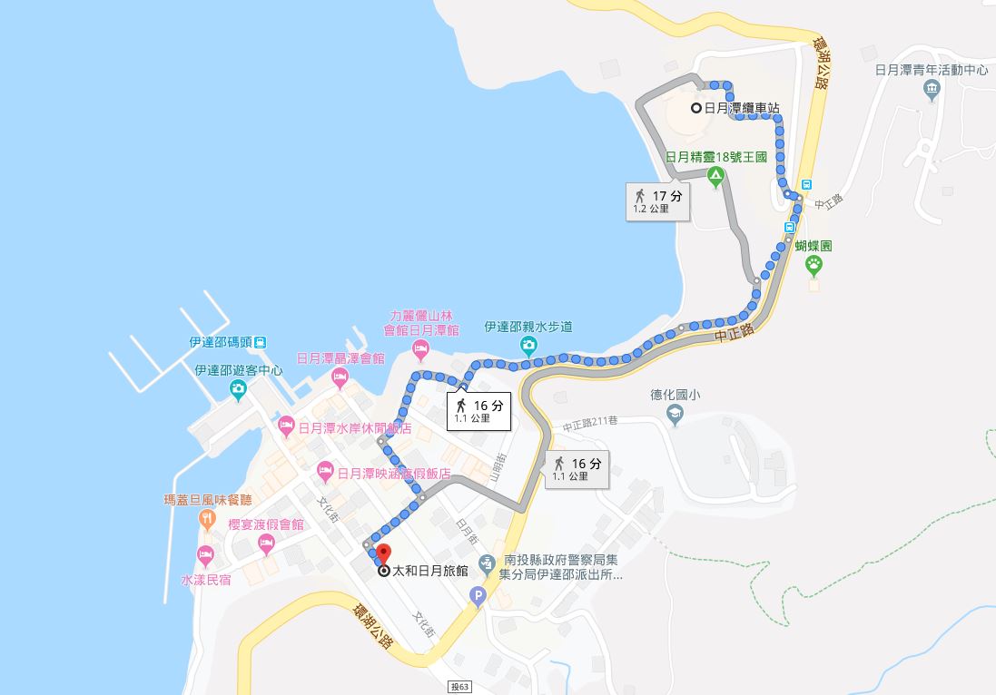 國道1號→台78線快速道路→國道3號→竹山交流道→集集(接省道台3線轉省道台16線)→水里(接省道台16線)→日月潭(接省道21甲線)→映涵渡假飯店-太和分館 -